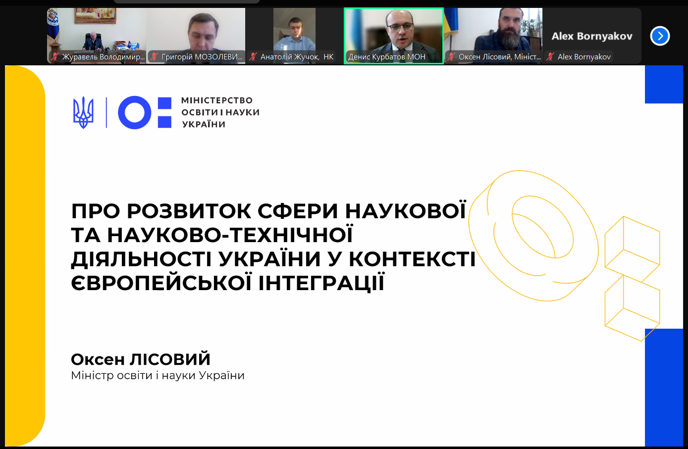 1. Про розвиток сфери наукової та науково-технічної діяльності України у контексті європейської інтеграції (доповідач – Лісовий Оксен Васильович).